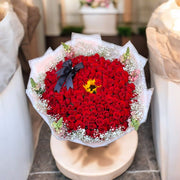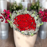 Ramo Pasión Rústica – 20 Rosas Rojas con Gipsophylia y Acapulco