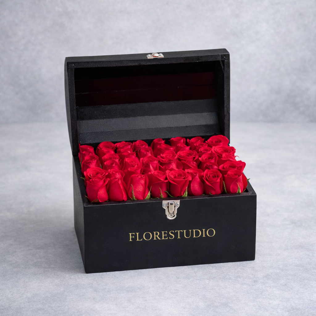 El Cofre de 36 Rosas Rojas es una experiencia floral pensada para causar