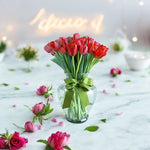 Arreglo Verde Esperanza – 40 Tulipanes con Moño en Jarrón