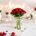 Arreglo Frescura Verde – 24 Rosas con Moño Verde en Jarrón